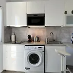 このアパートには必要な家電製品がすべて揃った台所があります。